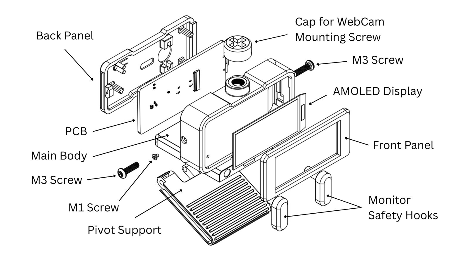 The device measures 68 x 60 x 54 mm and weighs about 100 grams. It’s powered and connected via USB-C, with a monitor-top mounting design that allows stacking of webcams. All hardware and software components are open source and released under permissive licenses to facilitate community contributions. A dedicated Serial IDE enables live JavaScript coding and debugging without removing the microSD card at all.