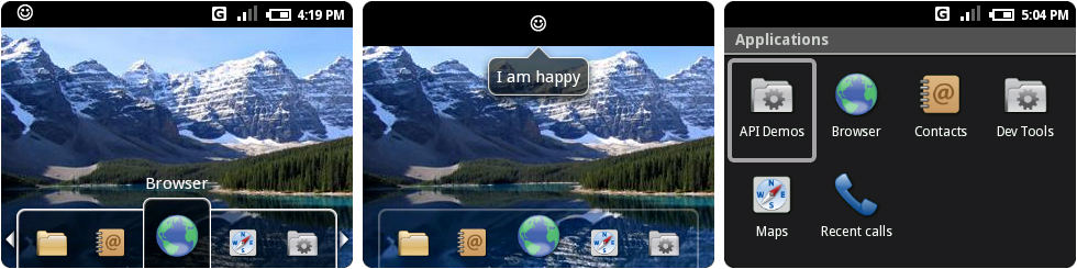First seen: Android 0.9 Beta (Widgets); Android 1.5 "Cupcake" (third-party Widgets)