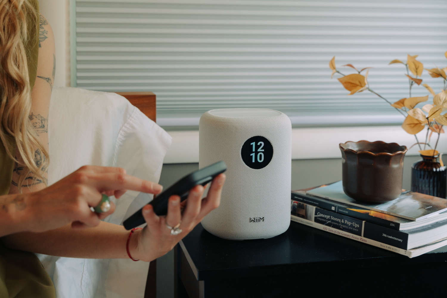 The WiiM Sound is advertised to offer hi-fi audio quality, intelligent connectivity and multi-room control. The speaker measures around 6 x 6 x 8 inches and is equipped with a 4-inch woofer and two tweeters that deliver 100 watts of combined power and support 24-bit 192 kHz high-res audio. With its automatic room correction called AI RoomFit, the compact WiiM Sound is supposed to produce room-filling sound.
