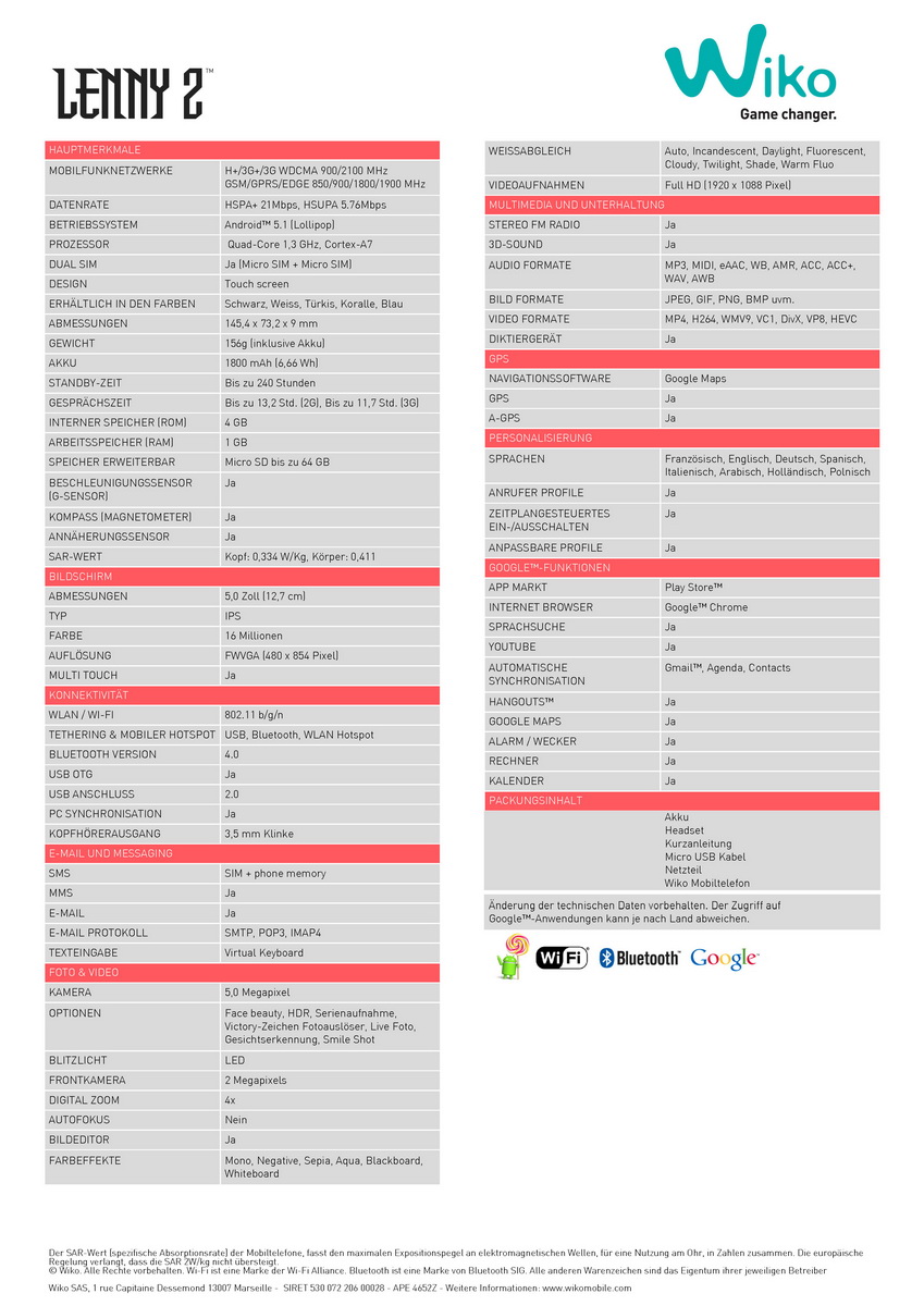 First, the Lenny 2 smartphone has been revised significantly from its predecessor. The following specifications are: