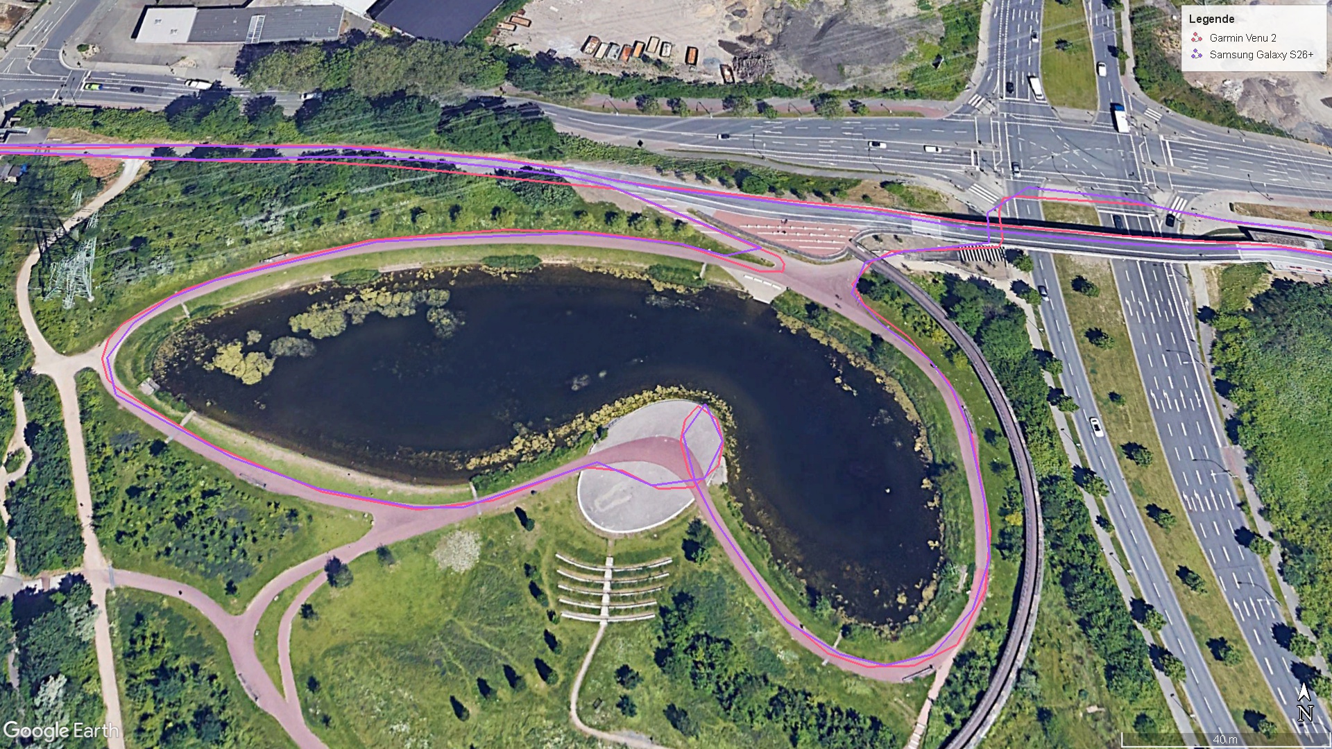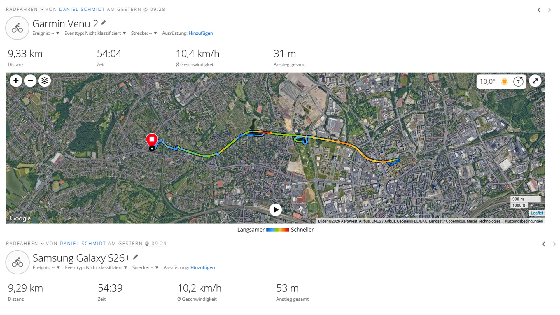 We compare the Samsung phone with a Garmin Venu 2 on a bike ride. The deviations from our route are small in the test and, in some cases, better than those of our reference smartwatch.