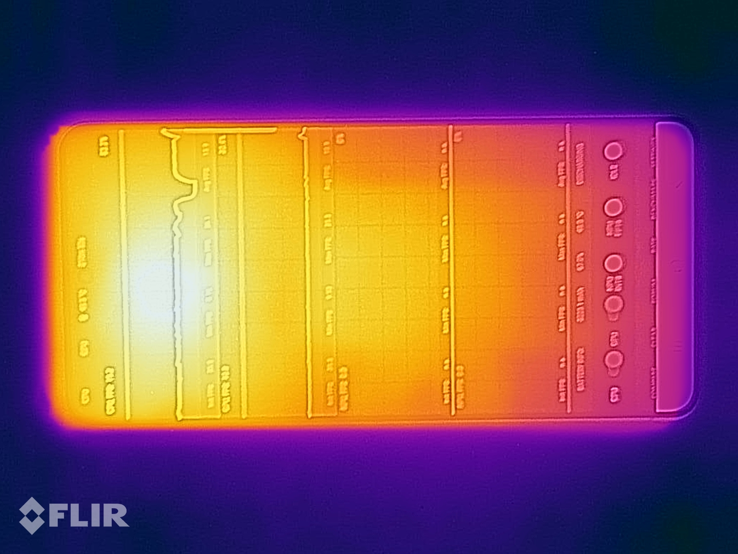 (-) The maximum temperature on the upper side is 47.5 °C / 118 F, compared to the average of 35.2 °C / 95 F, ranging from 21.9 to 247 °C for the class Smartphone.