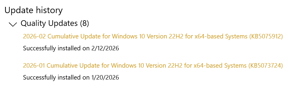 Microsoft points users to the Microsoft Update Catalog for the standalone packages, and the catalog listing shows KB5075912 entries for Windows 10 (including 22H2) dated February 10, 2026.