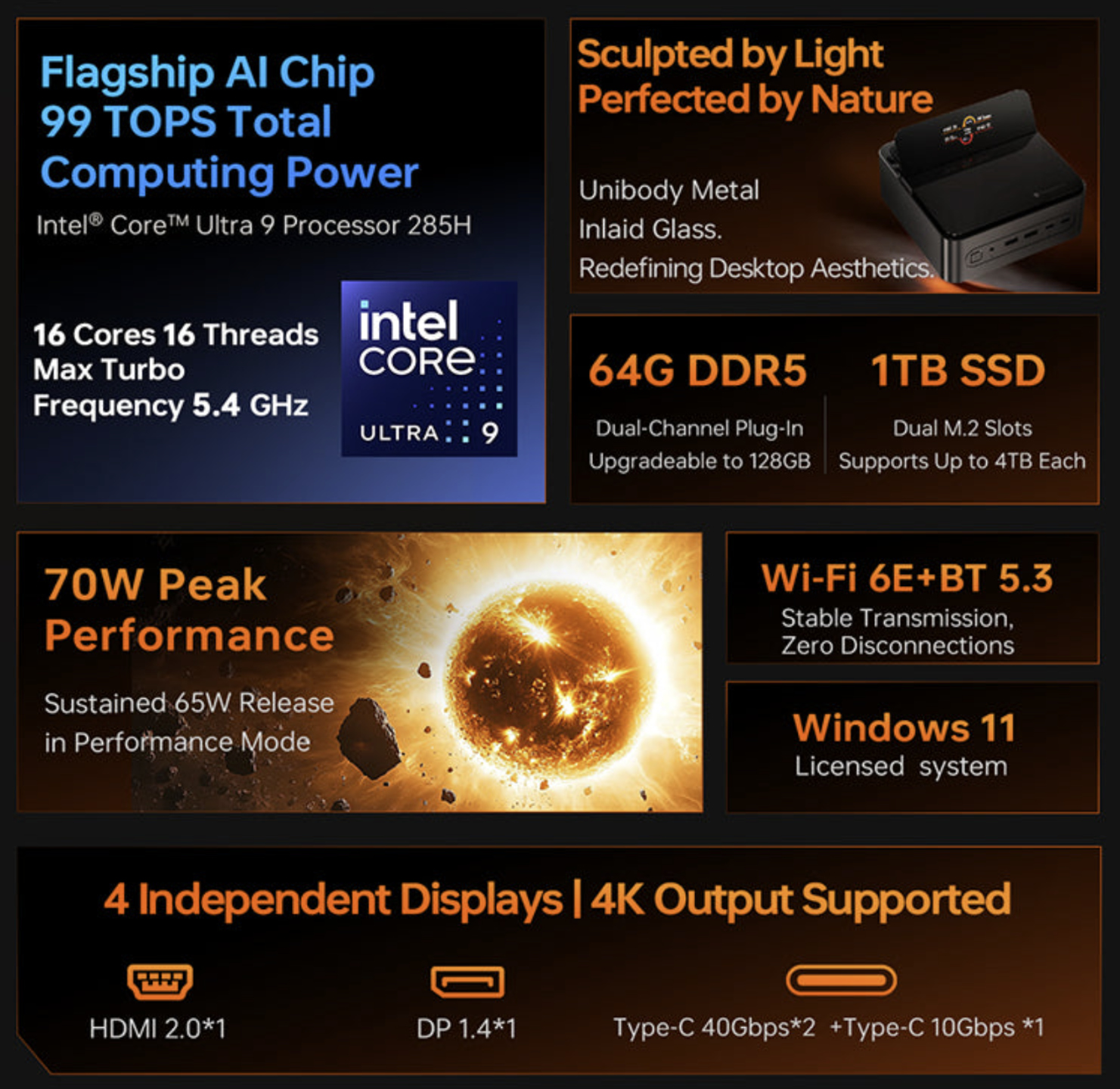 For now, Machenike has commented on global availability for either variant. Instead, Minixpc has taken it upon itself to stock the Machenike GTS and its flip-up status display for those living outside China. Unfortunately, the retailer is only offering the Machenike GTS in its most expensive configuration currently to compete with other Intel Arrow Lake-H mini-PCs like the GMKtec EVO-T1 (curr. $1,469.99 on Amazon).