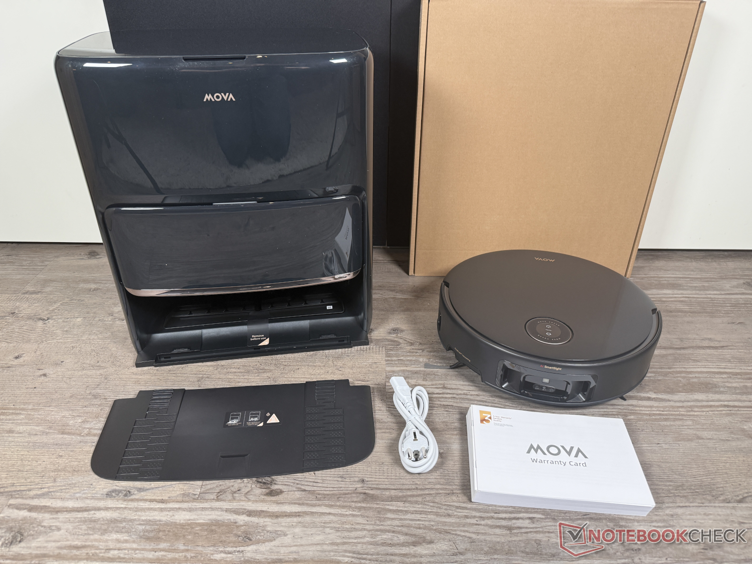 The Mova Z60 Ultra Roller in the Complete version also comes with a comprehensive scope of delivery. In addition to the robot and the base station, it comes with four dust bags and roller wipers, two main brushes, three side brushes, four dust filters (each installed once, rest replacement) as well as 1 l of cleaning solution and 200 ml of pet odor remover.