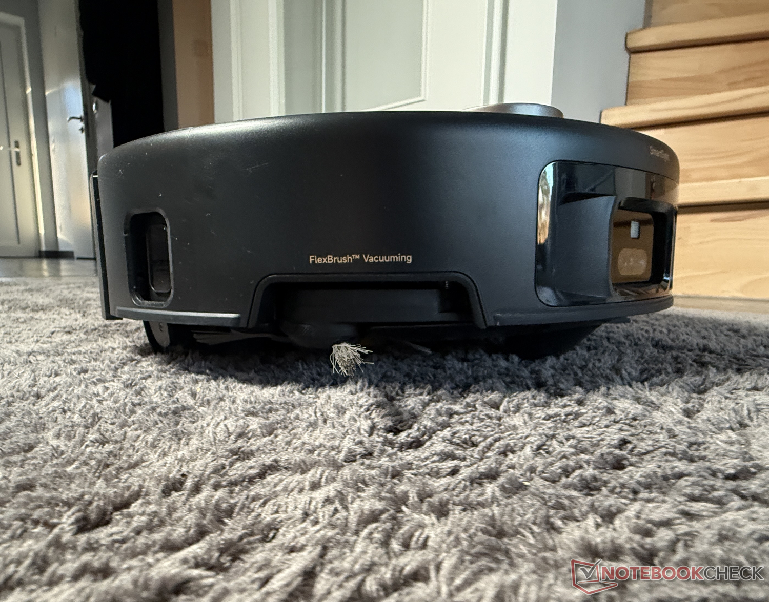 It was also able to remove most of the more stubborn dirt, often right up to the edge thanks to the lateral extension function. For our taste, it could have maneuvered a little closer to furniture and skirting boards. It sometimes left a bit of a safety distance with its extendable squeegee. However, we'd rather have a narrow, uncleaned strip than a scratched interior caused by the roller's plastic cover.