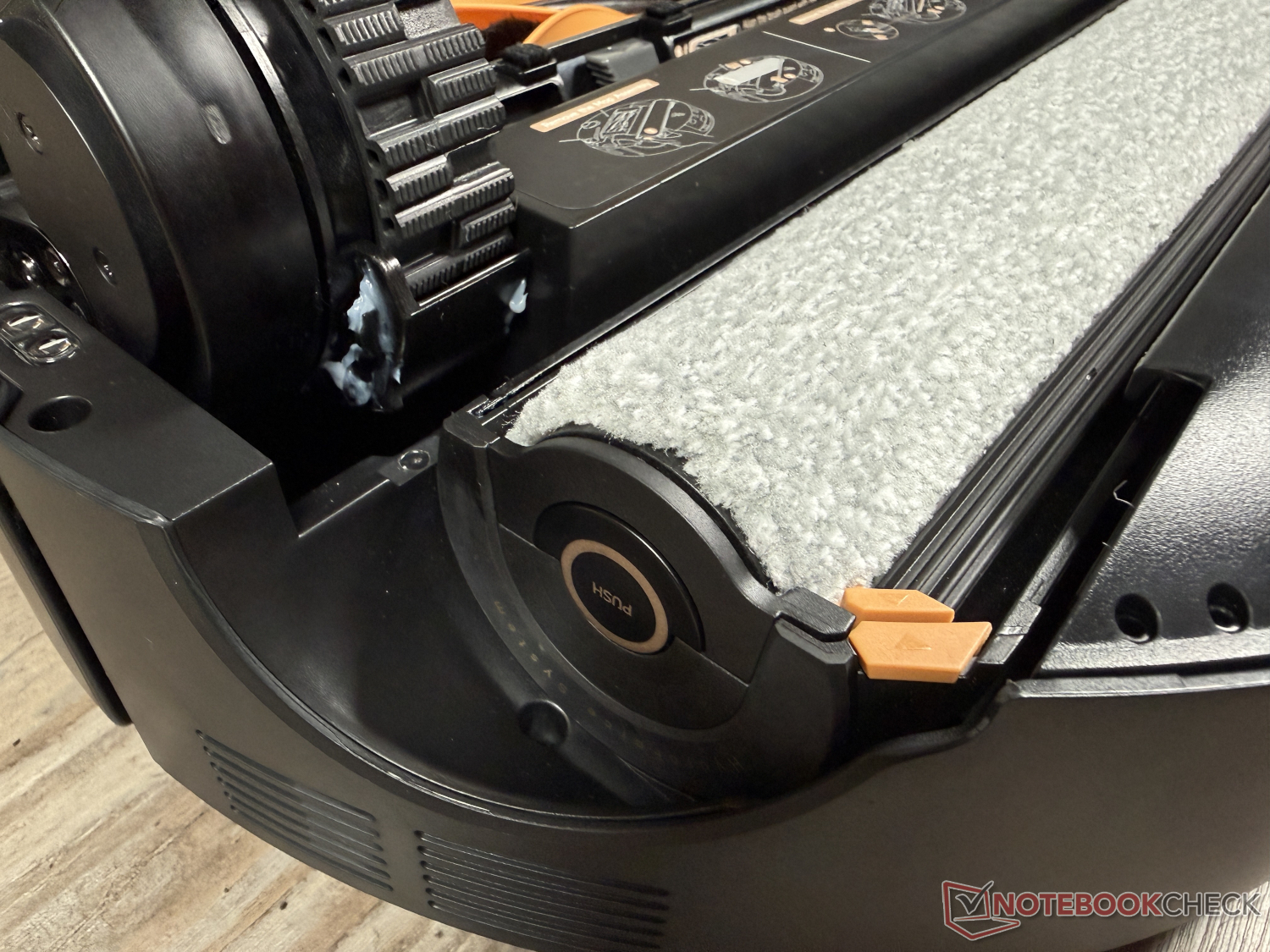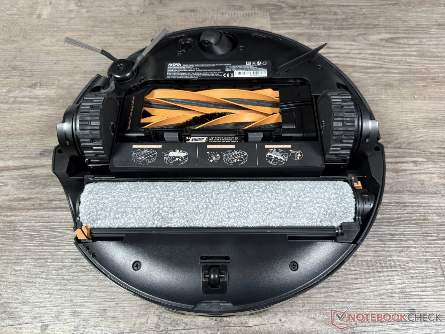 What is also identical is that both robotic vacuum cleaners use a wide mopping roller for mopping. The technology is called Mova HydroForce mopping and constantly rinses the roller mop, which has previously been freed of dirty water, with fresh water sprays from twelve nozzles. At 4,100 Pa, the contact pressure is slightly lower than with Dreame. However, the protective shield that covers the mop roller when cleaning carpets is also on board here.