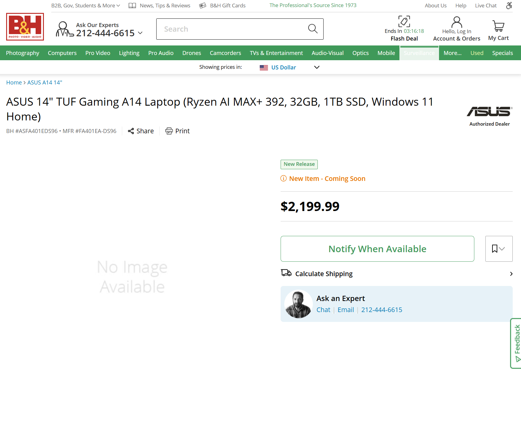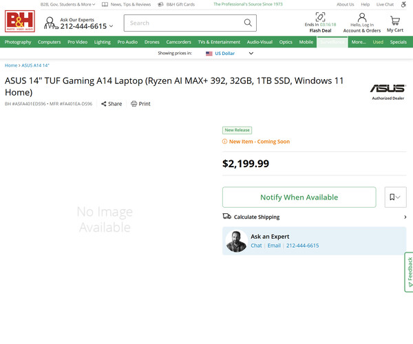 However, it seems that could soon change for Asus' Strix Halo-based FA401EA variant. Previously, Asus had listed the laptop on its US website. Now, Best Buy, B&H Photo Video and Provantage have followed suit. Earmarked as a 'new release', B&H Photo Video states that the FA401EA is 'coming soon' and includes a sign-up button to be notified when pre-orders open. Meanwhile, Provantage warns that the FA401EA is out of stock when attempting to place an order.