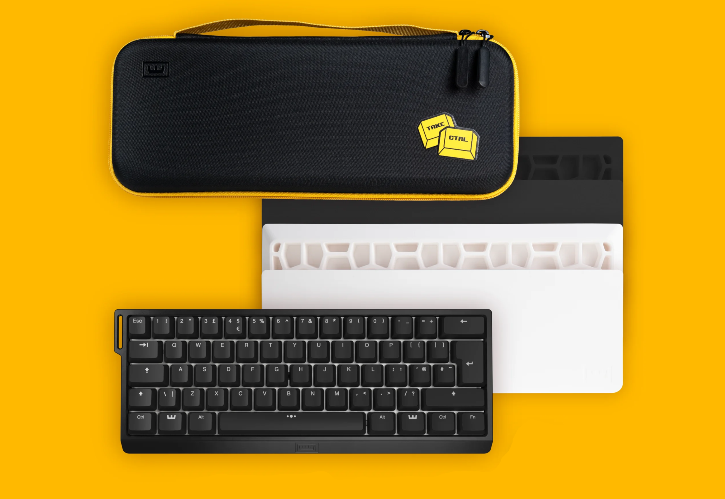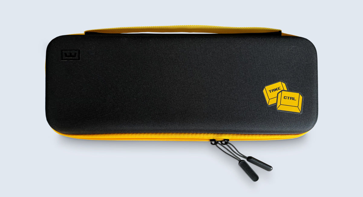 The free carrying case you get with the Wooting 60HE for Black Friday is much like the carrying case that came with the Iqunix EZ63 we previously reviewed. The Wooting travel case is only available in black with yellow accents, matching the stock strap of the 60HE, and it is made with a hard EVA shell with a soft velvet interior for the keyboard to nestle into. Much like the 60HE itself, the case is explicitly compatible with other 60% keyboards "with similar dimensions."
