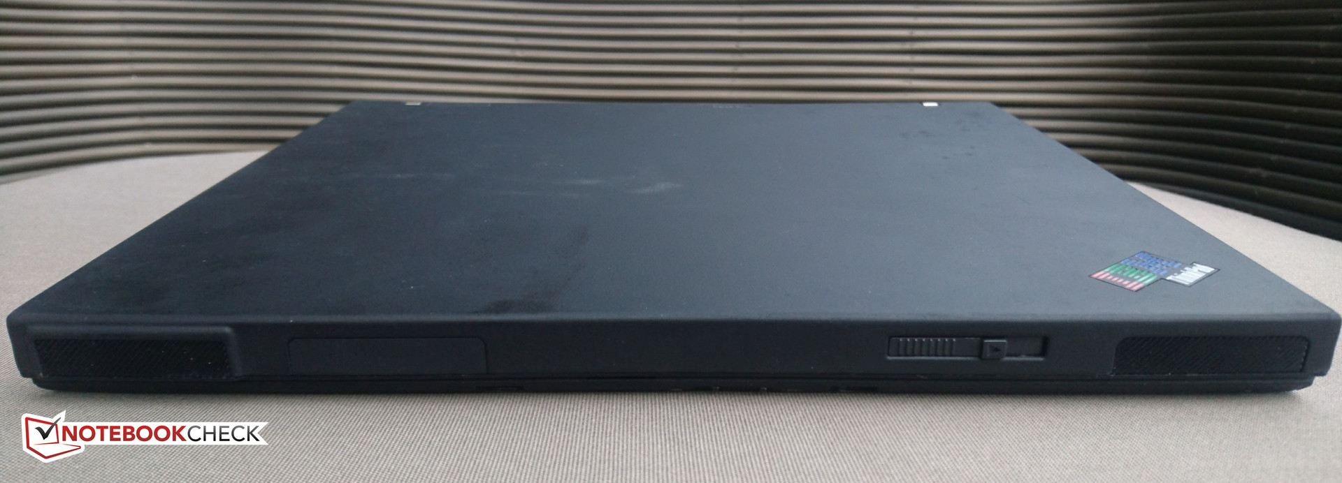 Being a boxy ThinkPad also has its benefits for robustness. Except for the rather obvious wear on the rubberized finish on the back of the display on our review unit, there are few hints that the materials used for the X62 are over a decade old. The fit and finish of the black plastic is excellent—especially for a machine whose case was originally manufactured over a decade ago before being refurbished for this device. The material resists fingerprints and grease exceptionally well. The chassis, keyboard, and hinges all seem exceptionally well put-together. The only hint that this isn't an original production of IBM or Lenovo is the decals added on both the lower bezel and ThinkVantage panel. The markings which identify the notebook model and the website of its creators, 51nb.com, look great. The other decals on the ThinkVantage panel above the function keys look good from most angles, but when looked at in the right light, they shine somewhat unnaturally. This is just a minor aesthetic complaint, however. One last design element of the chassis to note is that the X62 uses the classic ThinkPad opening hatch to secure the lid. Unless you haven't updated your laptop in about ten years, it will probably take some getting used to remember to pull the latch before trying to open.