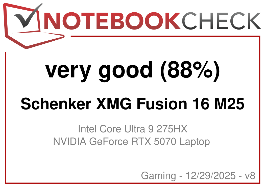| Schenker XMG Fusion 16 M25 Intel Core Ultra 9 275HX ⎘ NVIDIA GeForce RTX 5070 Laptop ⎘ 64 GB Memory, 2048 GB SSD | List Price: 2700€ | 2.1 kg | 23 mm | 16.00" 2880x1800 212 PPI OLED | |