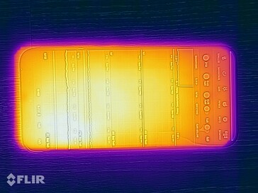 Surface temperatures can reach up to 48.5 °C under sustained load. However, since the hotspot is located next to the camera, this never becomes uncomfortable in everyday use.