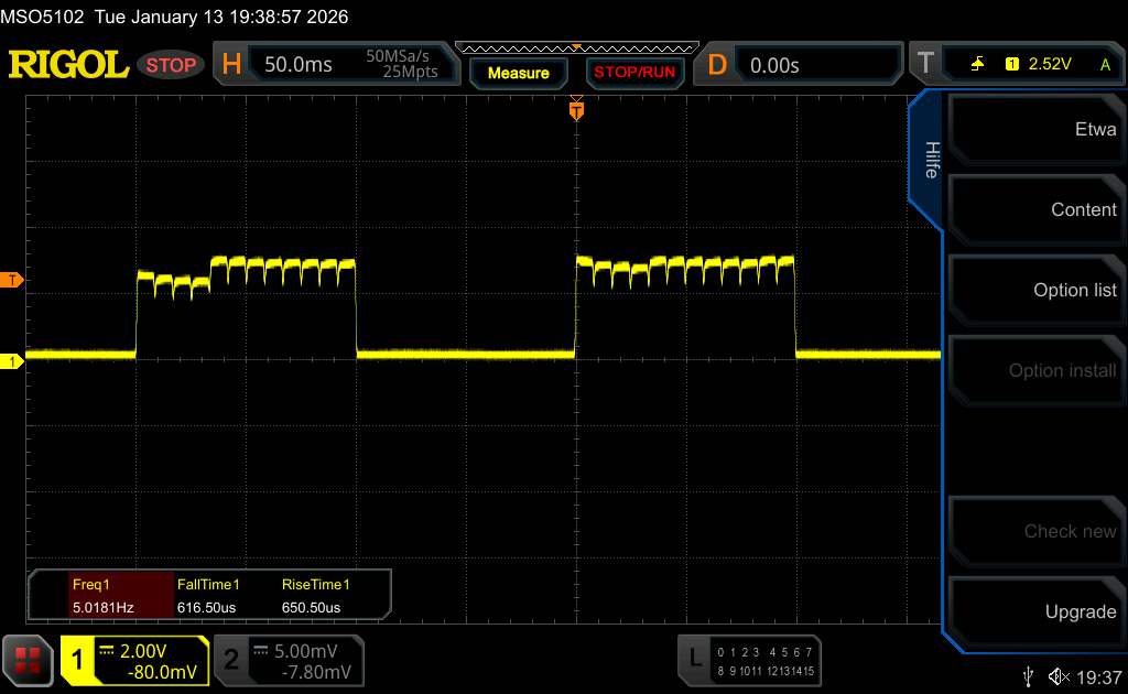 With the oscilloscope, we also measured a basic flickering in the range of the native refresh rate. Xiaomi also uses a high-frequency PWM dimming with 2,160 Hz, which should not cause any complaints for most people.