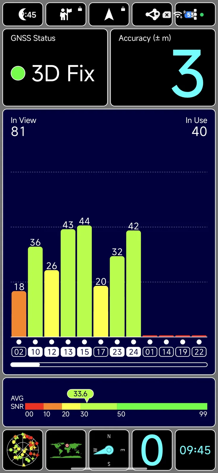 Dual and tri-band connectivity in global satellite networks is available for positioning. The satellite fix is highly accurate both indoors and outdoors.