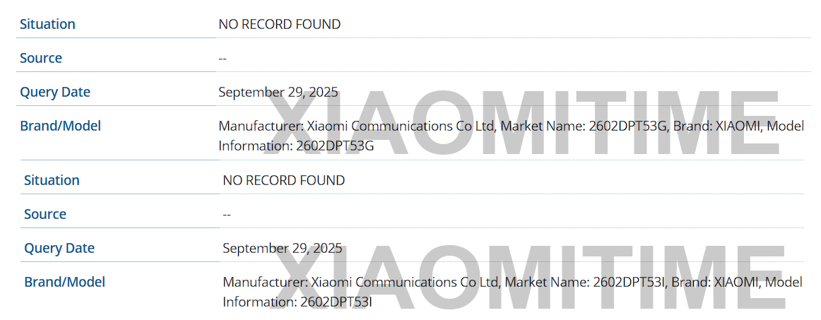 Namely, two unreleased Xiaomi smartphones have appeared on IMEI databases. Sporting the model numbers 2602DPT53G and 2602DPT53I, the pair relate to the same underlying device. For the time being at least, no equivalent Chinese model has turned up. However, the G and I suffixes indicate that Xiaomi will be releasing '2602DPT53' in India as well as globally.