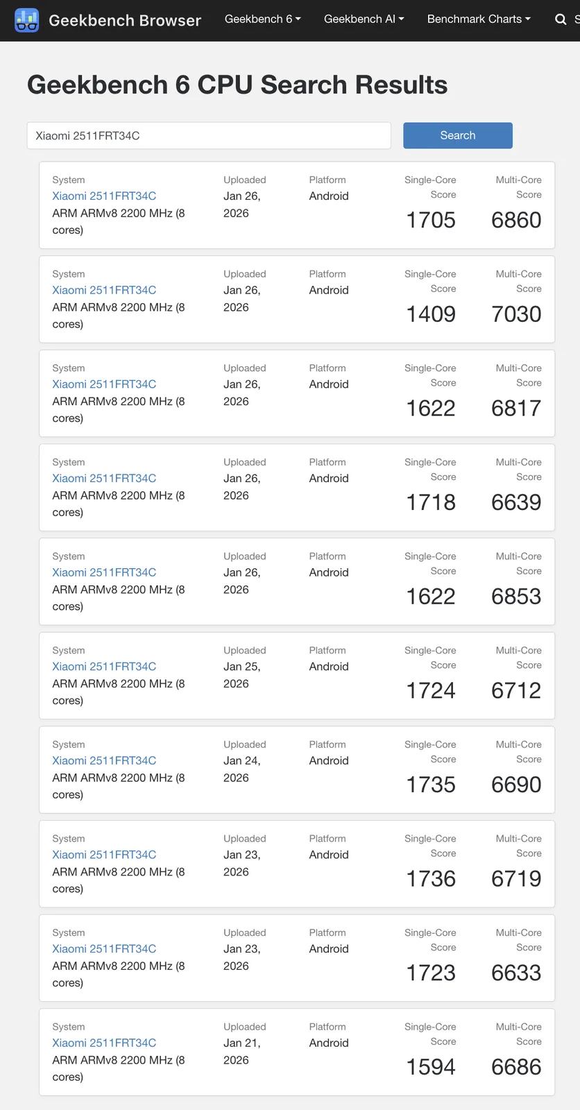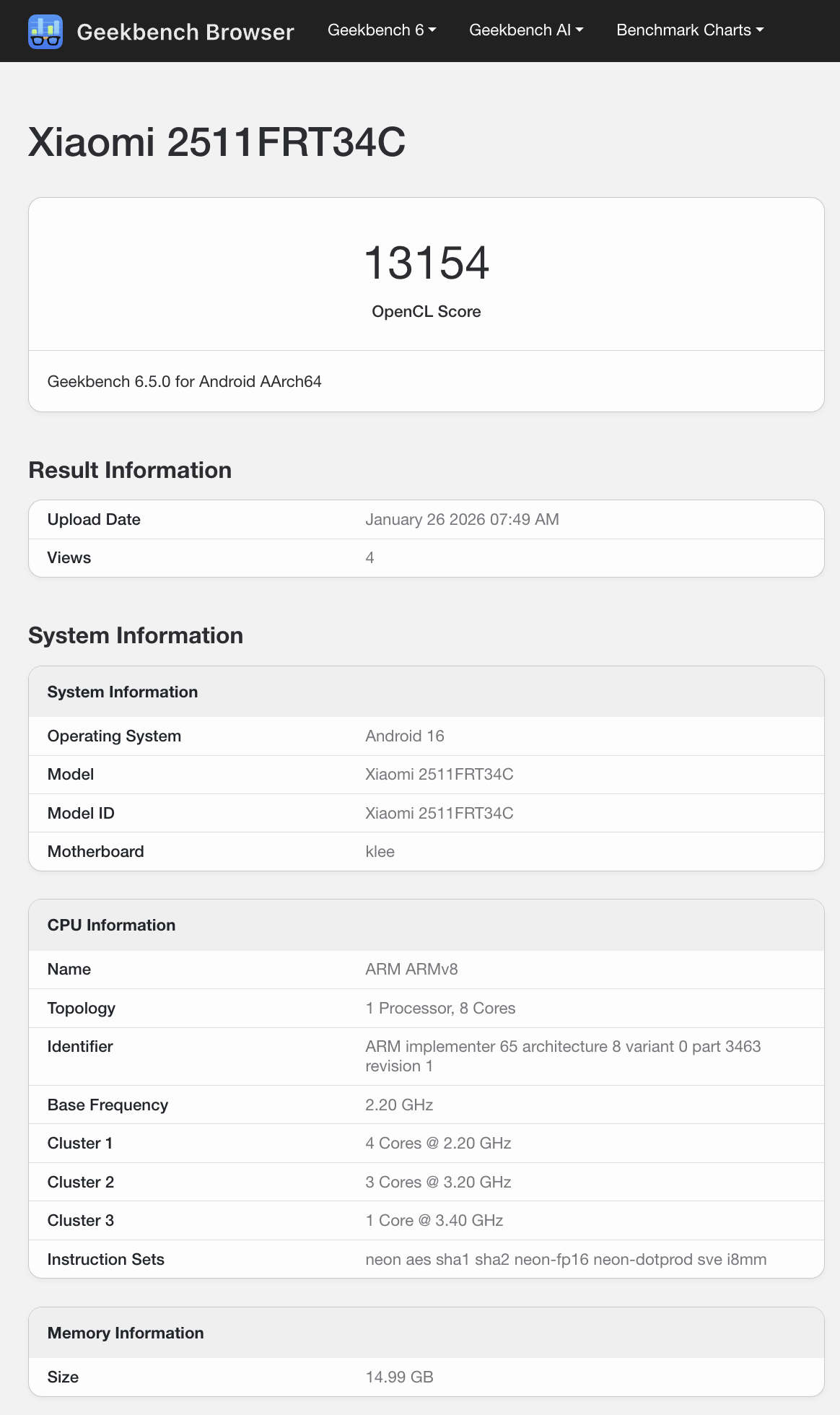 Specifically, the Redmi Turbo 5 and its Dimensity 8500 chipset have averaged single-core and multi-core scores of 1,659 and 6,764 in Geekbench 6.5 while being paired with 12 GB or 16 GB of RAM. Meanwhile, the single GPU benchmark that has emerged so far sees the Redmi Turbo 5 scoring 13,154.