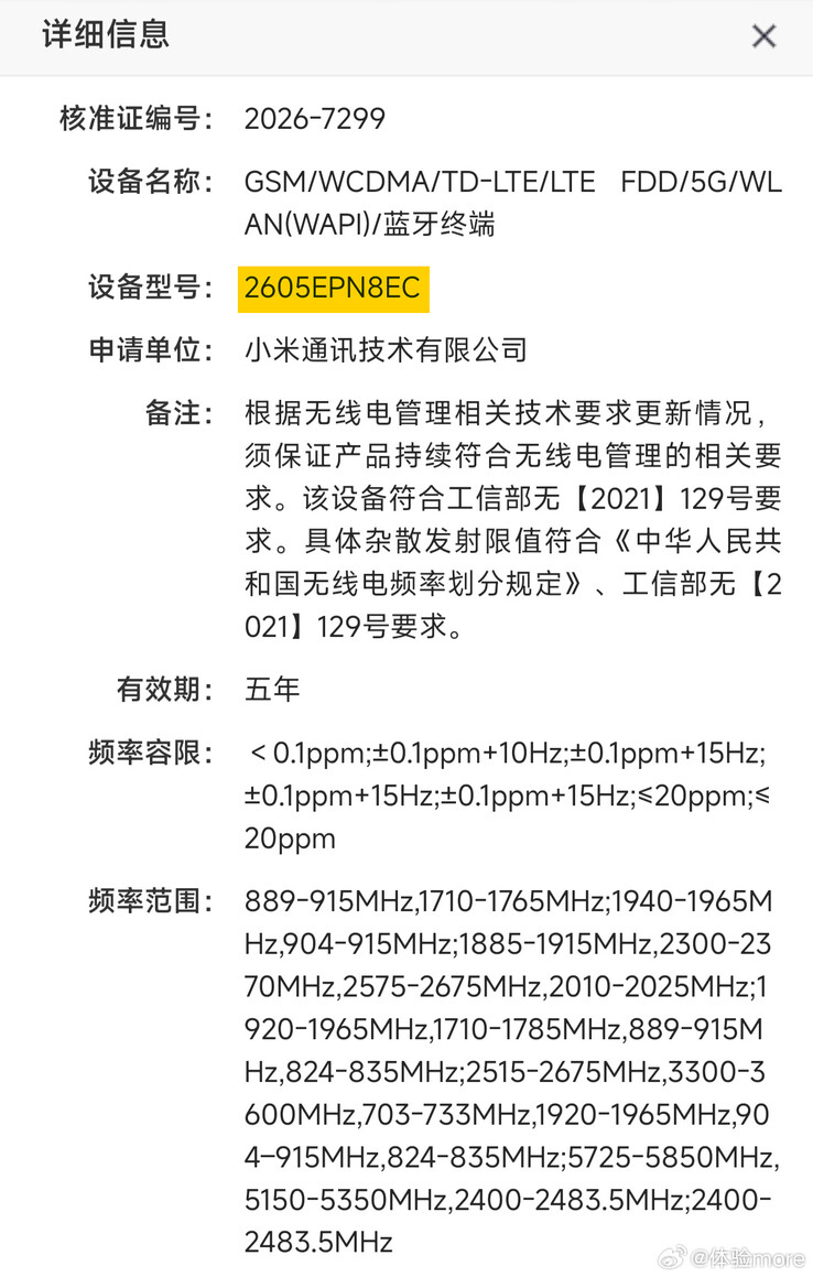 Specifically, multiple sources have observed the SRRC certifying the mysterious '2605EPN8EC' for sale in China. From its model number alone, we can infer that Xiaomi intends to offer the device in its home market during May 2026. Whether that comes to pass remains to be seen at this point, though.