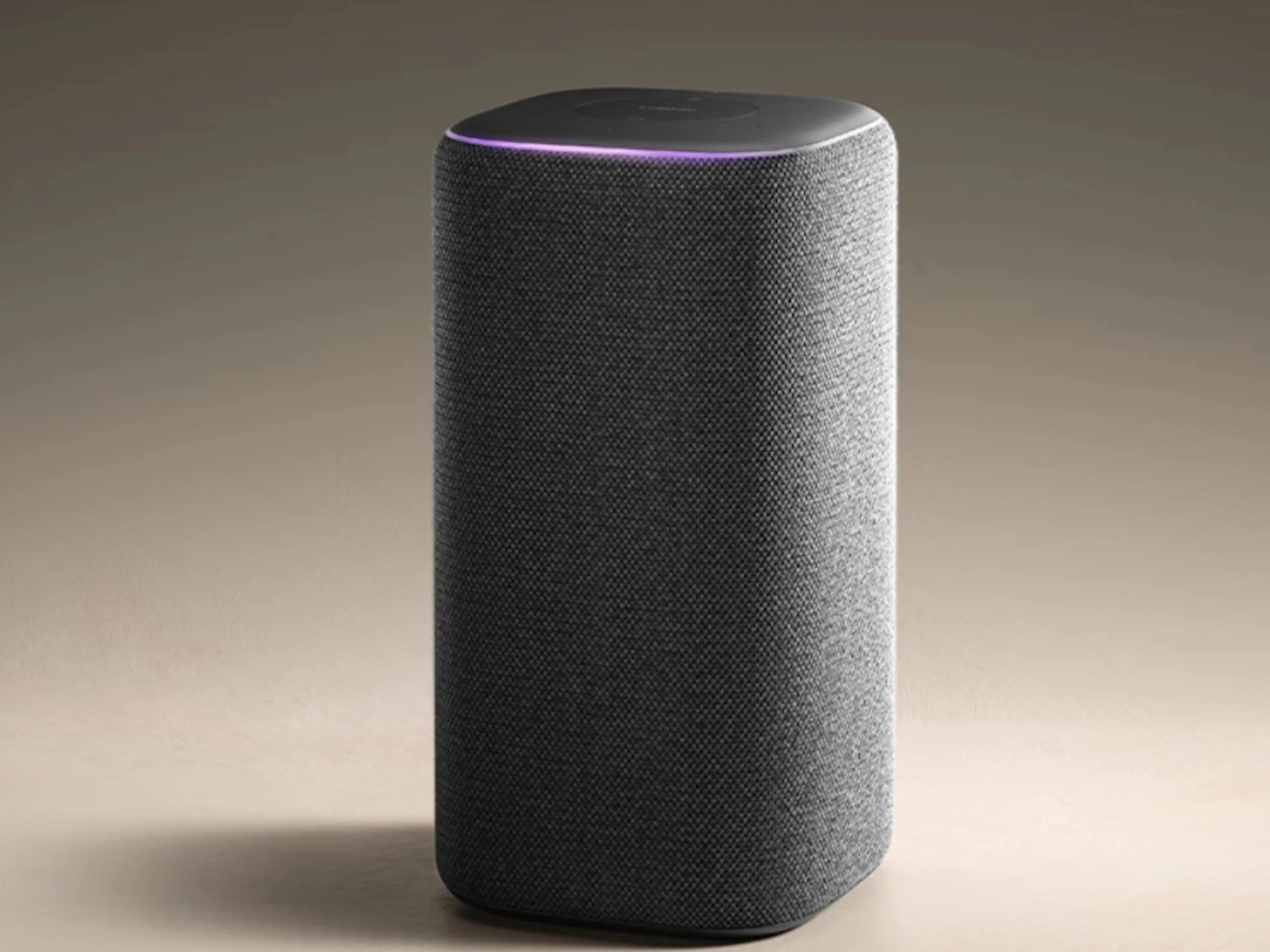 The company has not yet communicated the exact technical specifications. What we can see from the product image, however, is a speaker with a design typical of smart speakers: The device appears to be encased in fabric, allowing for a more attractive look without negatively affecting the playback quality of audio content. There also appears to be a light strip at the transition between the side and top, which may well be for displaying various elements such as sound level, battery level and/or for creating lighting effects corresponding to the music playback.
