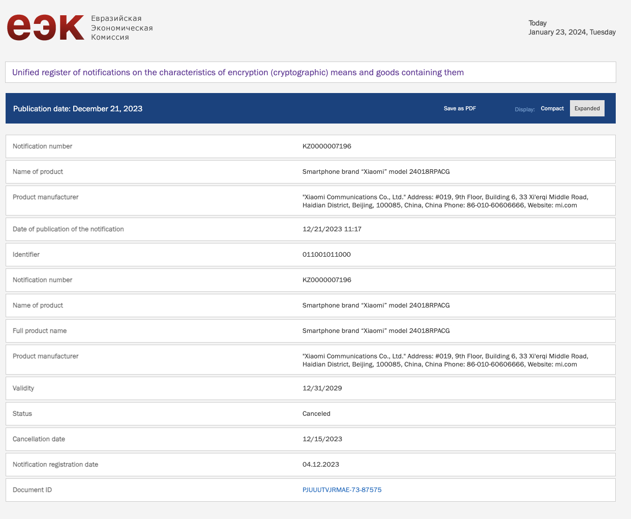 Surprisingly, CUVA has ratified the 24018RPACC and 24018RPACG, two variants of the same device. Given that 24018RPACC has been linked with the Pad 7 Pro, the 'G' suffix in 24018RPACG suggests that Xiaomi is preparing an accompanying global model. Incidentally, GSMChina claimed as much last month, albeit by observing the codename 'sheng_pre_global' in HyperOS code.