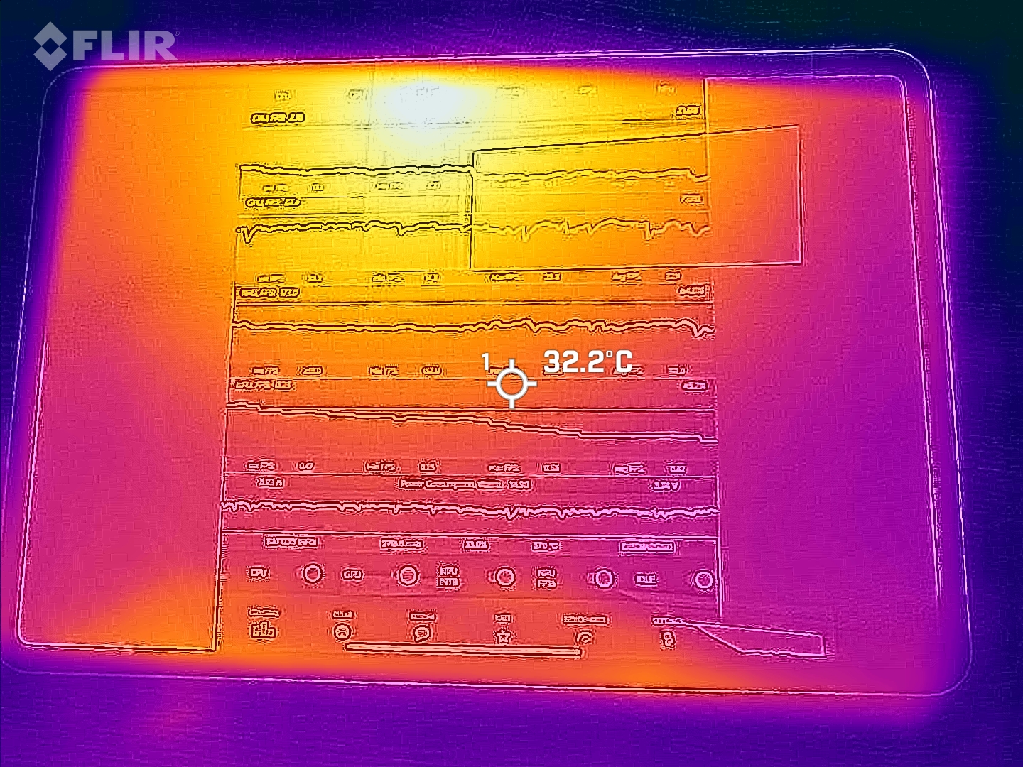 Surface temperatures of the tablet's housing are very heterogeneous in our load scenario but are also at an uncritical level in the hot spot area.