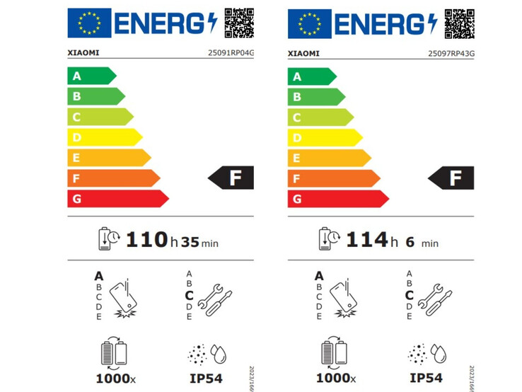 In the meantime, Sudhanshu Ambhore has obtained EU energy labels for the 25091RP04G and 25091RP43G. Ultimately, these model numbers do not reveal much themselves. The Pad 8 and Pad 8 Pro's release in China with the model numbers 25091RP43C