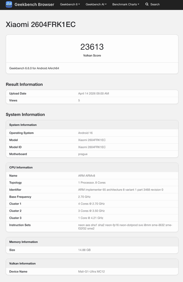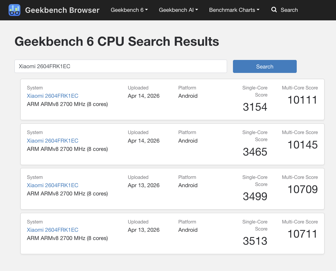 Meanwhile, CPU performance is on par with what we have come to expect from the Dimensity 9500 and its octa-core chipset. Hence, the Redmi K90 Max trades blows with modern flagships like the Galaxy S26 Ultra, Xiaomi 17 Ultra and the OnePlus 15 (curr. $899 on Amazon). Geekbench indicates that Xiaomi plans to offer the Redmi K90 Max with up to 16 GB of RAM too.