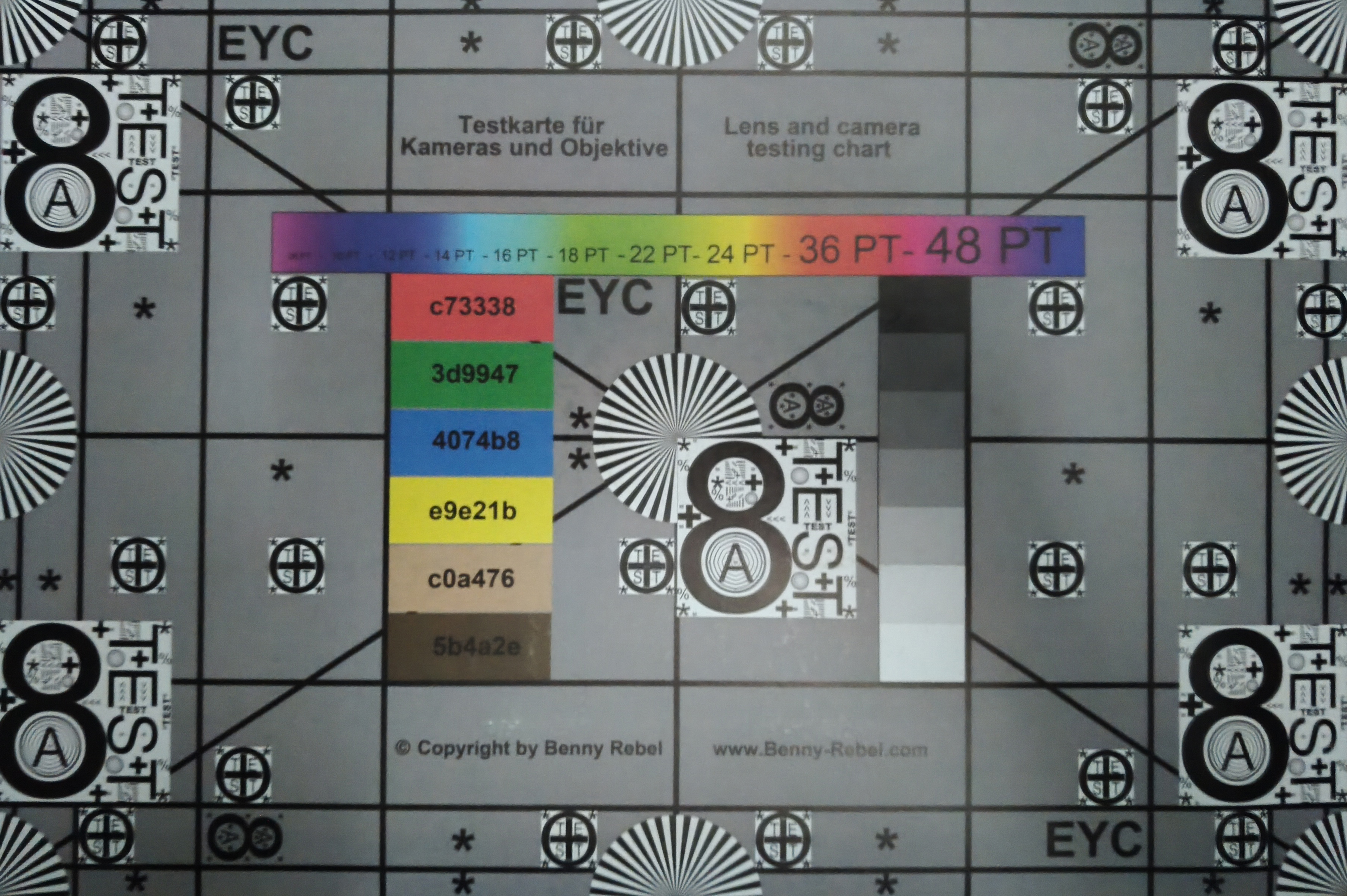 Hauptkamera PflanzeHauptkamera UmgebungHauptkamera Low LightWeitwinkelkameraUnder studio lighting, the sharpness of the test chart is good. Even difficult colors such as red do not cause any problems.