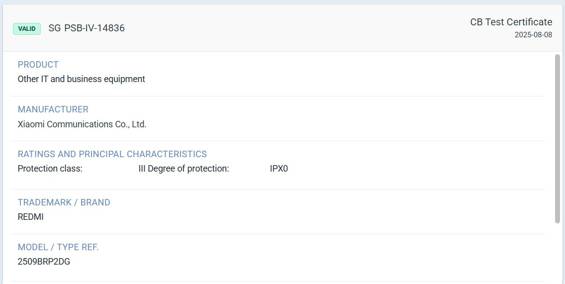 While the Snapdragon 7s Gen 4 is effectively an overclocked Snapdragon 7s Gen 3, this would still see the Redmi Pad 2 Pro outperforming its predecessor by a wide margin. Now, Xiaomi has been spotted certifying the 2509BRP2DG across Singapore and the United Arab Emirates (UAE). Based on prior IMEI database results, the 2509BRP2DG is not the regular Redmi Pad 2 Pro.