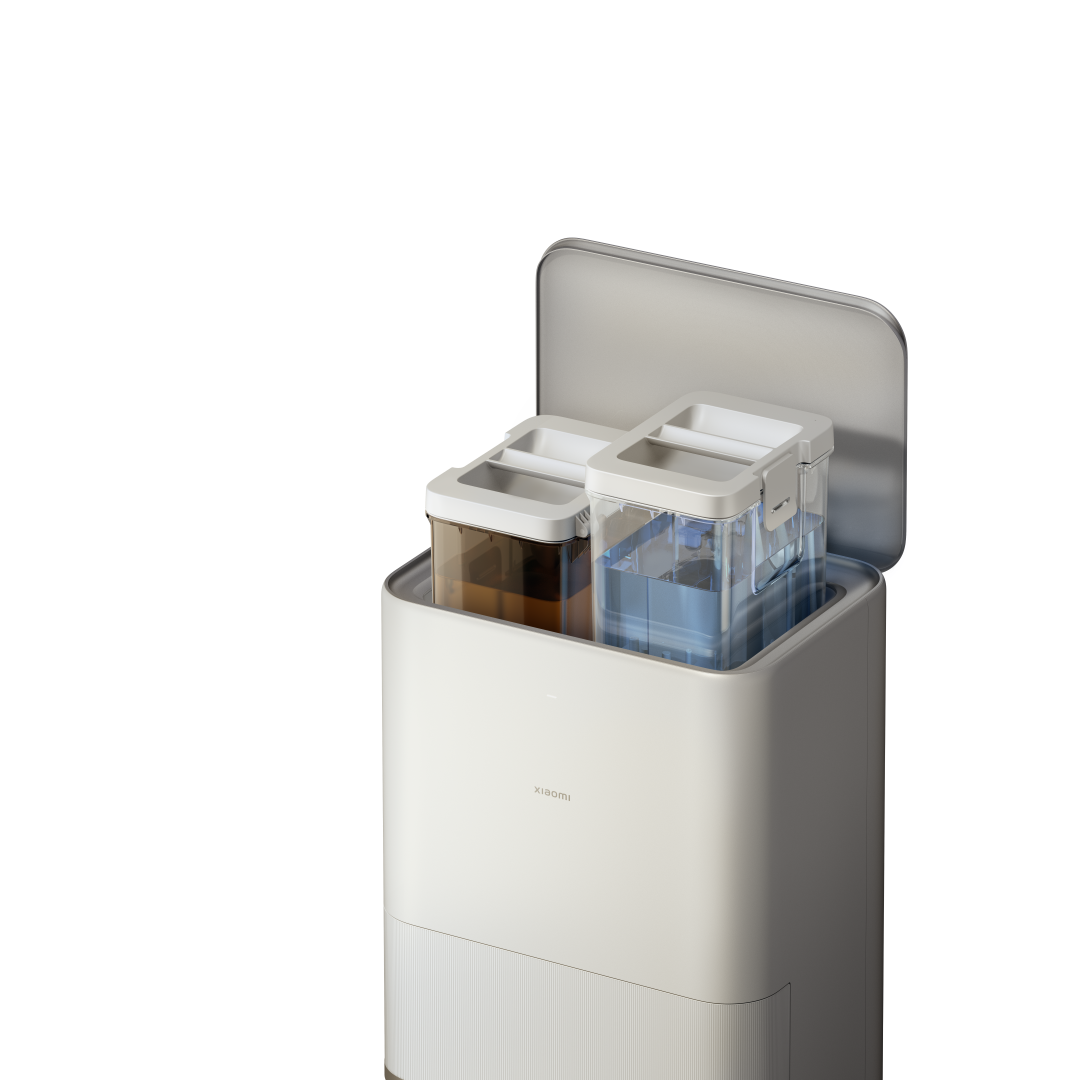 The Xiaomi Robot Vacuum 5 series comes with a self-emptying station, which offers features like 80 °C (176 °F) hot water mop washing, hot air drying, and auto dust emptying. Xiaomi has incorporated a 2.5 L auto-empty dust bag and a 4 L water tank into the base station. According to Xiaomi, the former is capable of holding debris for over 75 days, while the latter offers 400 m² of cleaning coverage on a single refill.