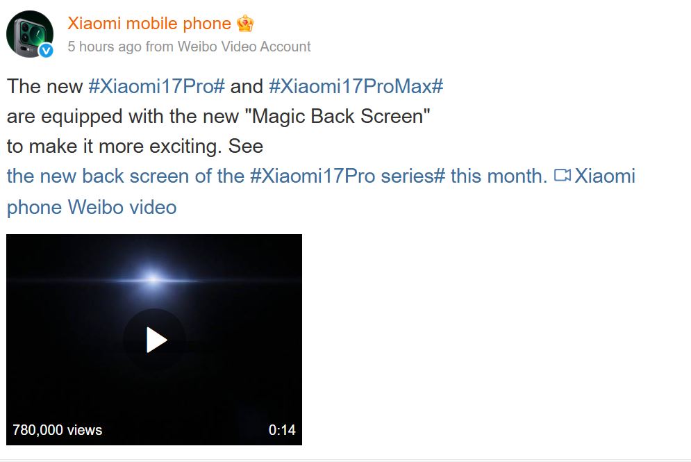 After accidentally leaking and then taking down the design of their upcoming Xiaomi 17 Pro/Pro Max series, the company has now officially shown the new dual-screen Xiaomi 17 Pro smartphones in a short teaser video on Weibo. The design borrows from phones like the new Apple iPhone 17 Pro and the flip devices like the Galaxy Z Flip 7 and the Motorolla Razr.