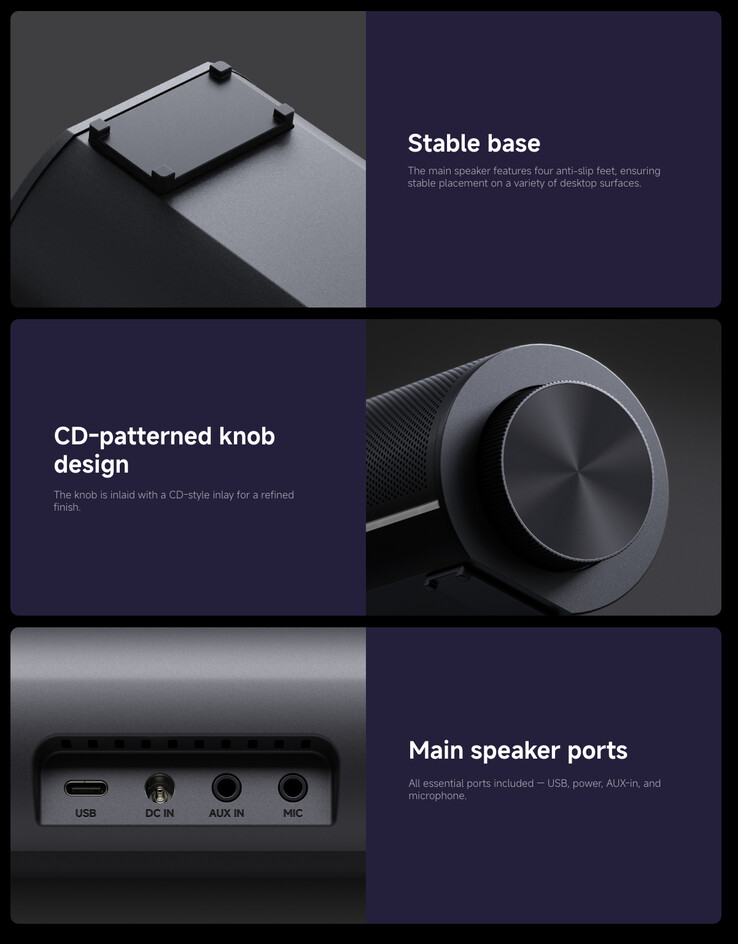 Xiaomi equips its soundbar element with four drivers that it tilts 53° upwards to maximise its soundstage. Meanwhile, the subwoofer contains a 96 mm driver and connects via 2.4 GHz to minimise latency. Also, the Desktop Speaker Pro Set supports 3.5 mm, USB Type-C and Bluetooth 5.3 connectivity with a dedicated 3.5 mm microphone jack too.