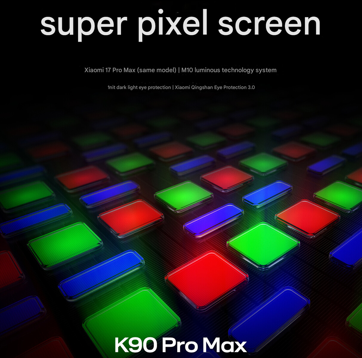 The company further shares that the K90 Pro Max features a 6.9-inch display that's claimed to deliver the same experience as the screen of the Xiaomi 17 Pro Max (available on TradingShenzhen). With "Qingshan Eye Protection 3.0," 1-nit brightness support, and full DC dimming, the panel is said to ensure comfortable viewing in challenging environments.