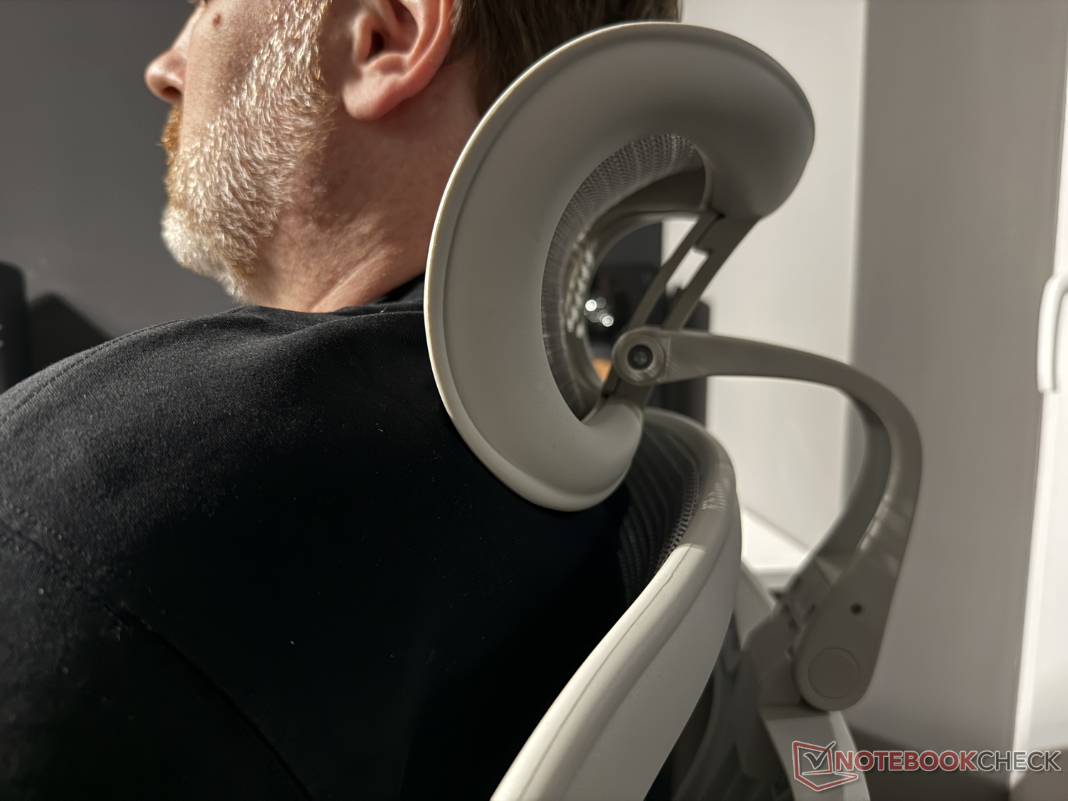 The manufacturer advertises that the ergonomic office chair should fit people from 155 to 190 cm. I have to disagree with that. I'm a good 180 cm tall myself and apparently have a relatively long upper body. Both with this model and with one or two other similar models, I couldn't get my shoulders properly under the headrest. This means that when sitting upright and leaning back, my shoulder blades collide with the lower edge of the headrest, even with the backrest raised to the maximum and the headrest turned upwards. In contrast, a test person around 175 cm tall had no problems at all.