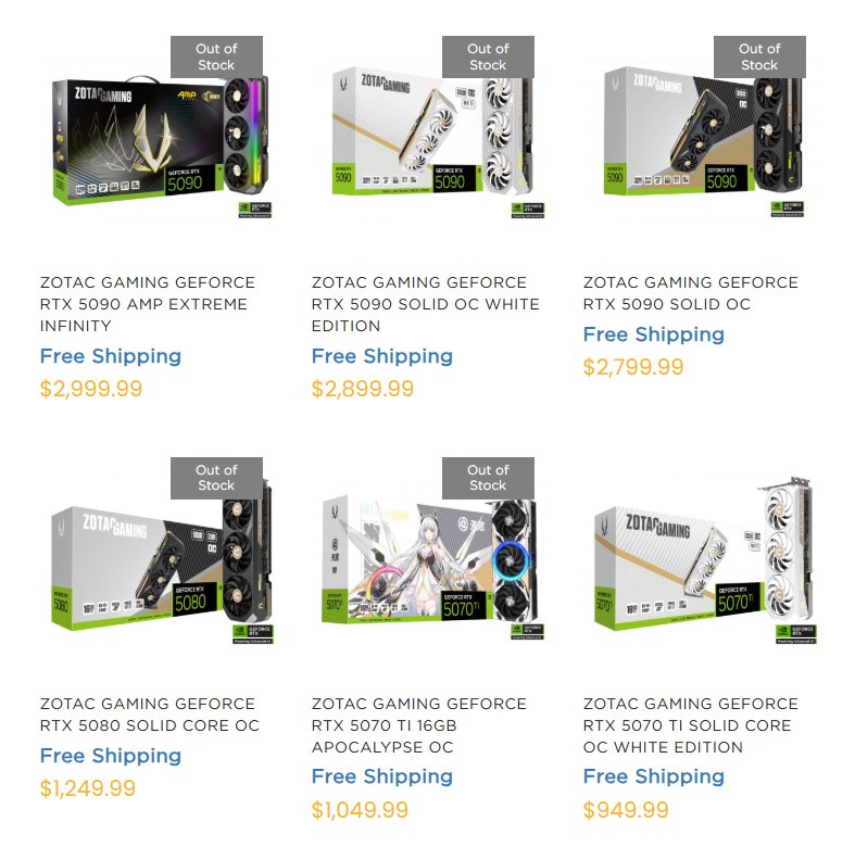 RTX 50 series GPUs on ZOTAC's website. (Image Source: ZOTAC)