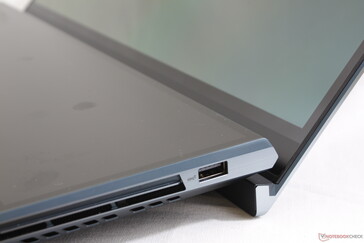 Port options are somewhat meager. Despite having a thicker and heavier chassis, the UX581 has fewer ports than last year's UX580. Asus has dropped both the MicroSD reader and one USB Type-C port for an additional USB Type-A port. Port positioning is otherwise good as they are evenly distributed and easy to reach along the sides.