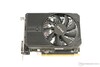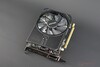 The Zotac GeForce GTX 1050 Mini is a rather nondescript-looking black graphic card which stands out primarily because it is so compact. The circuit board measures only 14.5 x 11.1 cm (5.7 x 4.4 inches) and doesn't require an additional PCI Express power supply. For this reason, the GPU is especially well-suited for situations where the space is limited and power is restricted. Because of the heatsink, the card takes up two slots. The heatsink is made from aluminum and dissipates the heat from the core via fins arranged in a star-shaped pattern. A single 90 mm axial fan aids in the cooling process. Video-outs are standard fare: Dual-Link DVI, HDMI 2.0b (HDCP 2.2) and DisplayPort 1.4. All ports can be used simultaneously, so the card supports a 3-monitor setup.