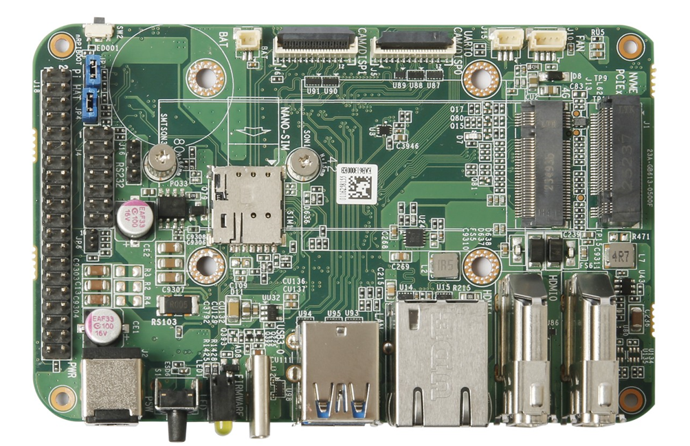 Additionally, the CM5-PICO board offers a 40-pin Raspberry Pi HAT header, RS232 header, dual CSI-2 camera interfaces, and a PWM fan header. The board also features one Key-M 2280 and one Key-B 3024 PCIe modules that allow connecting NVMe SSDs, 4G/5G modems, and dedicated NPUs for AI inference.