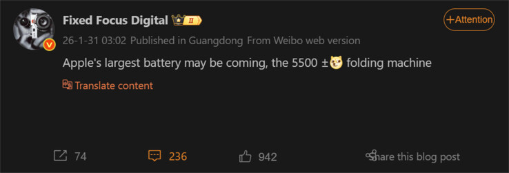 For instance, Fixed Focus Digital recently informed its followers that the iPhone Fold will ship with the largest battery of any iPhone to date. Writing on Weibo, they claimed that the iPhone Fold is set to arrive with a circa 5,500 mah battery.